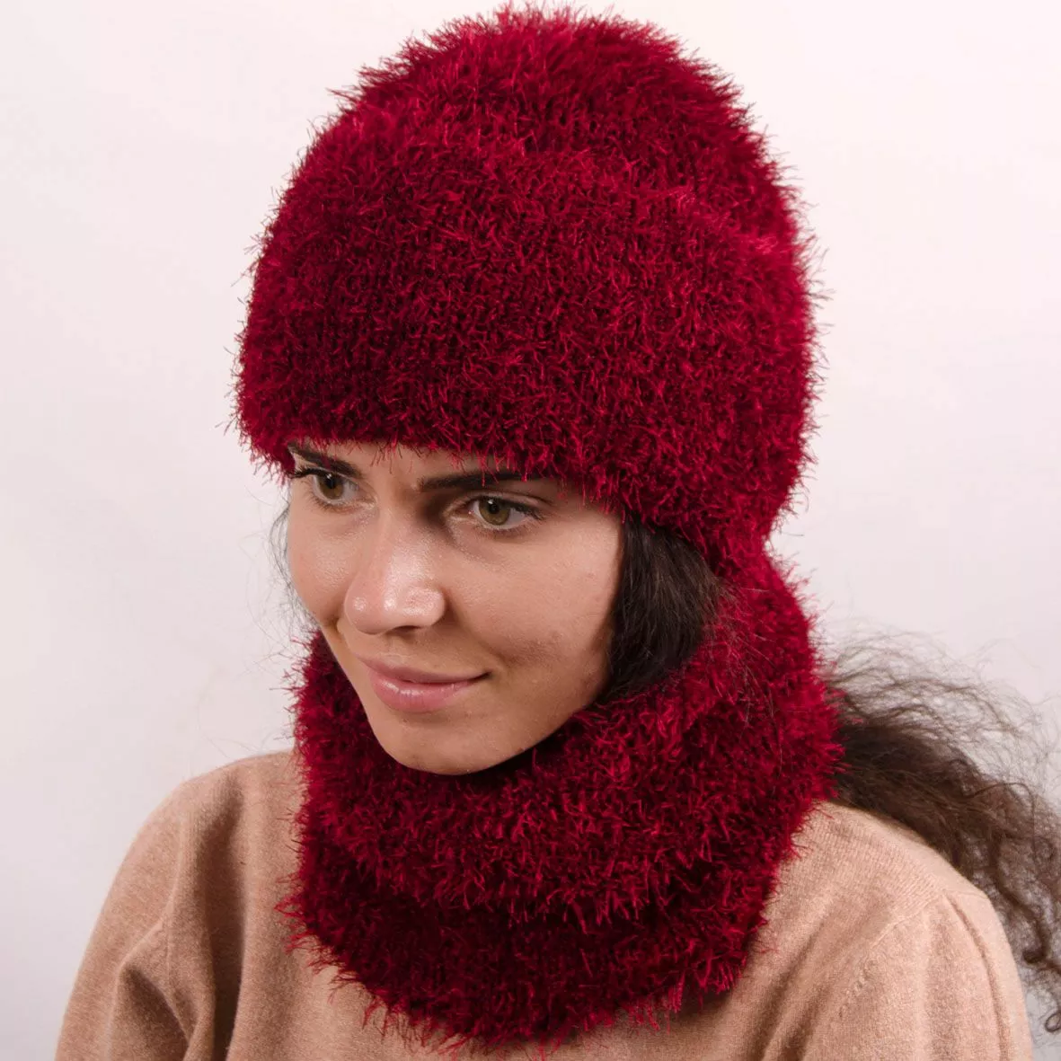 Однотонный женский набор - состоит из хомута и стильной шапки.
