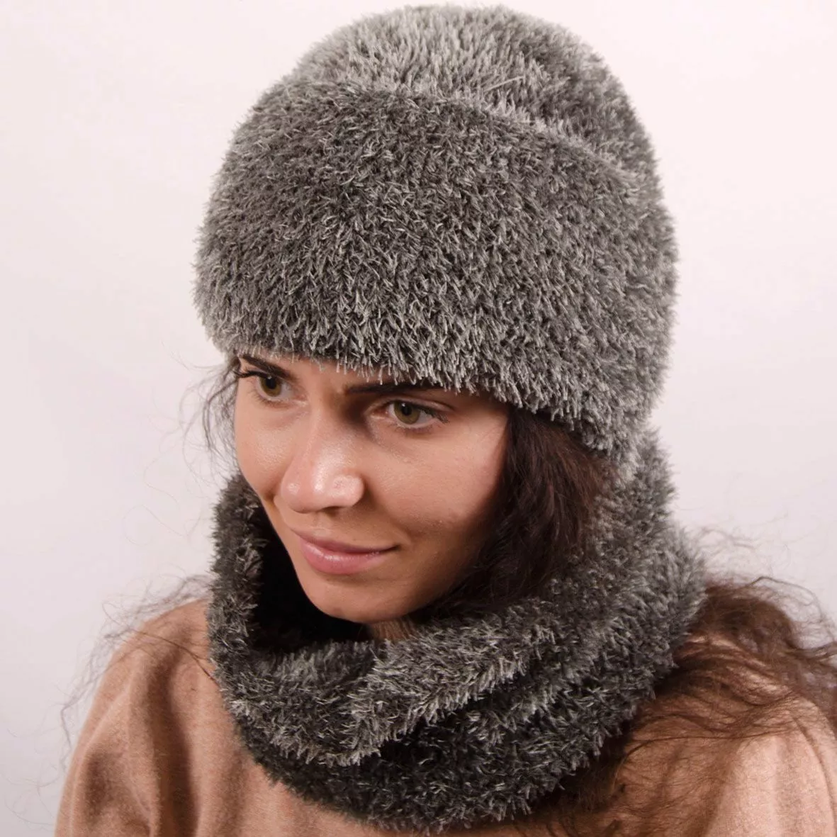 Однотонный женский набор - состоит из хомута и стильной шапки.