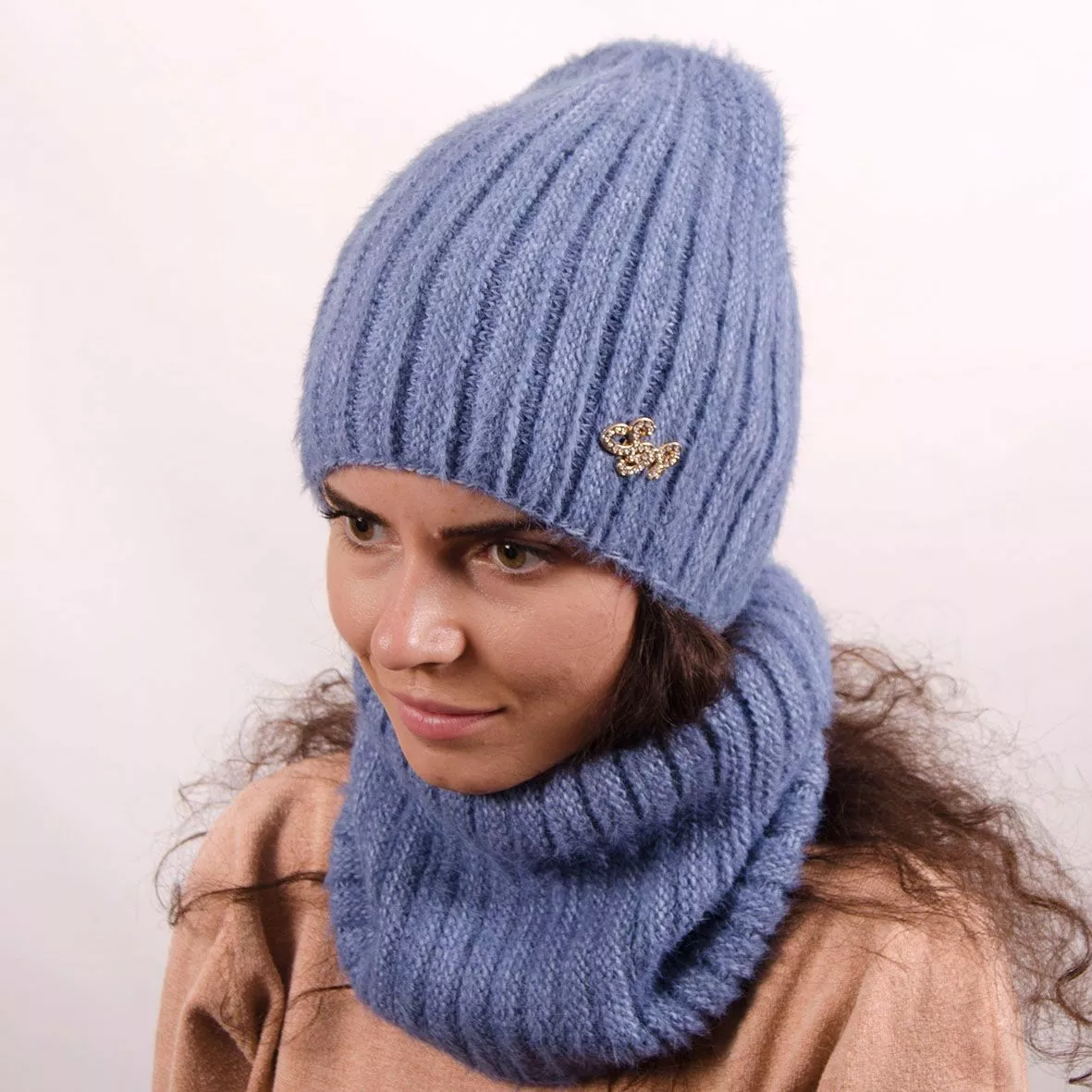 Однотонный женский набор - состоит из хомута и стильной шапки.