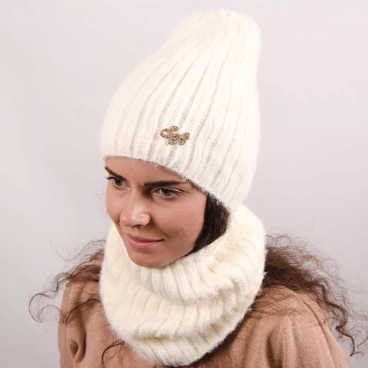Однотонный женский набор - состоит из хомута и стильной шапки.