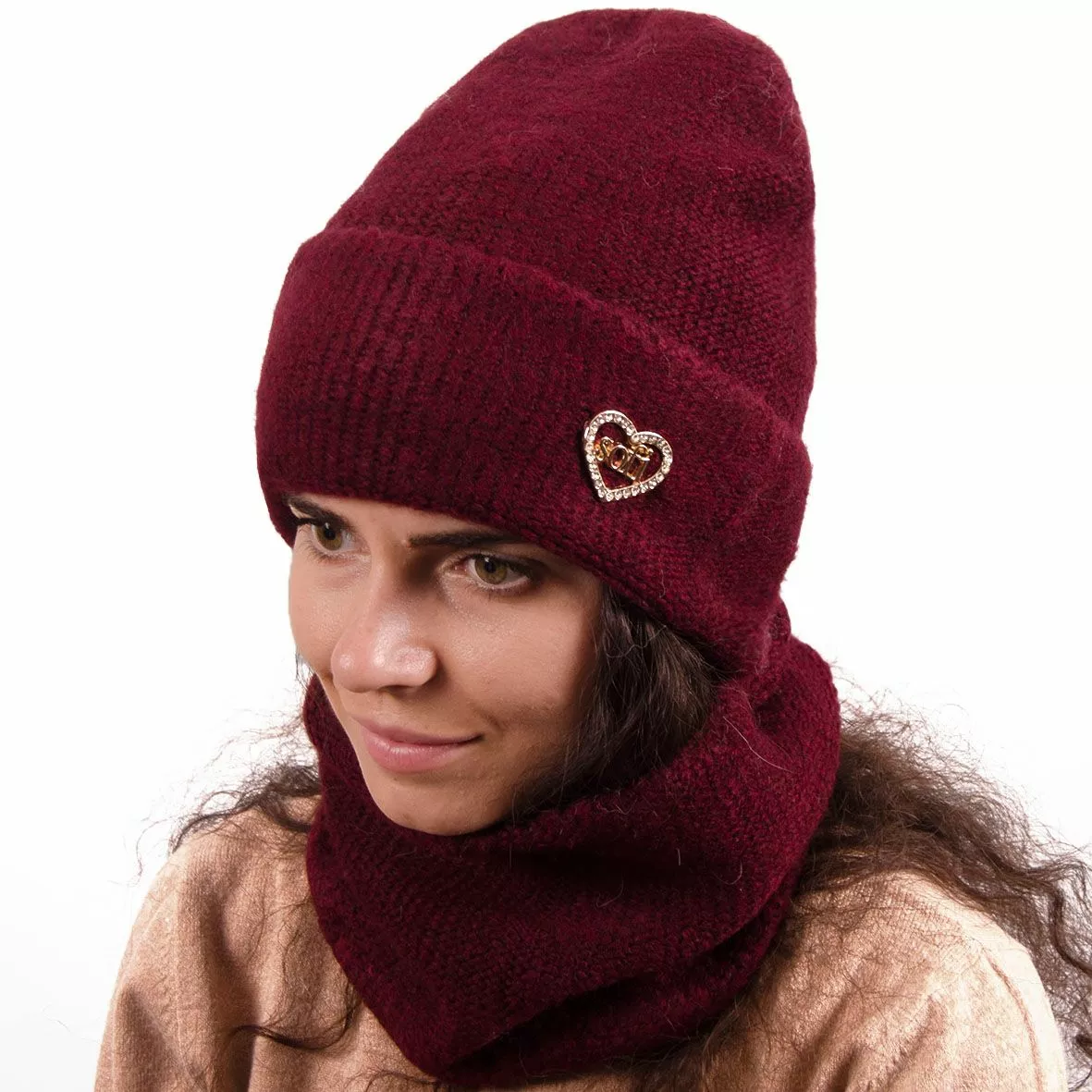 Однотонный женский набор - состоит из хомута и стильной шапки.