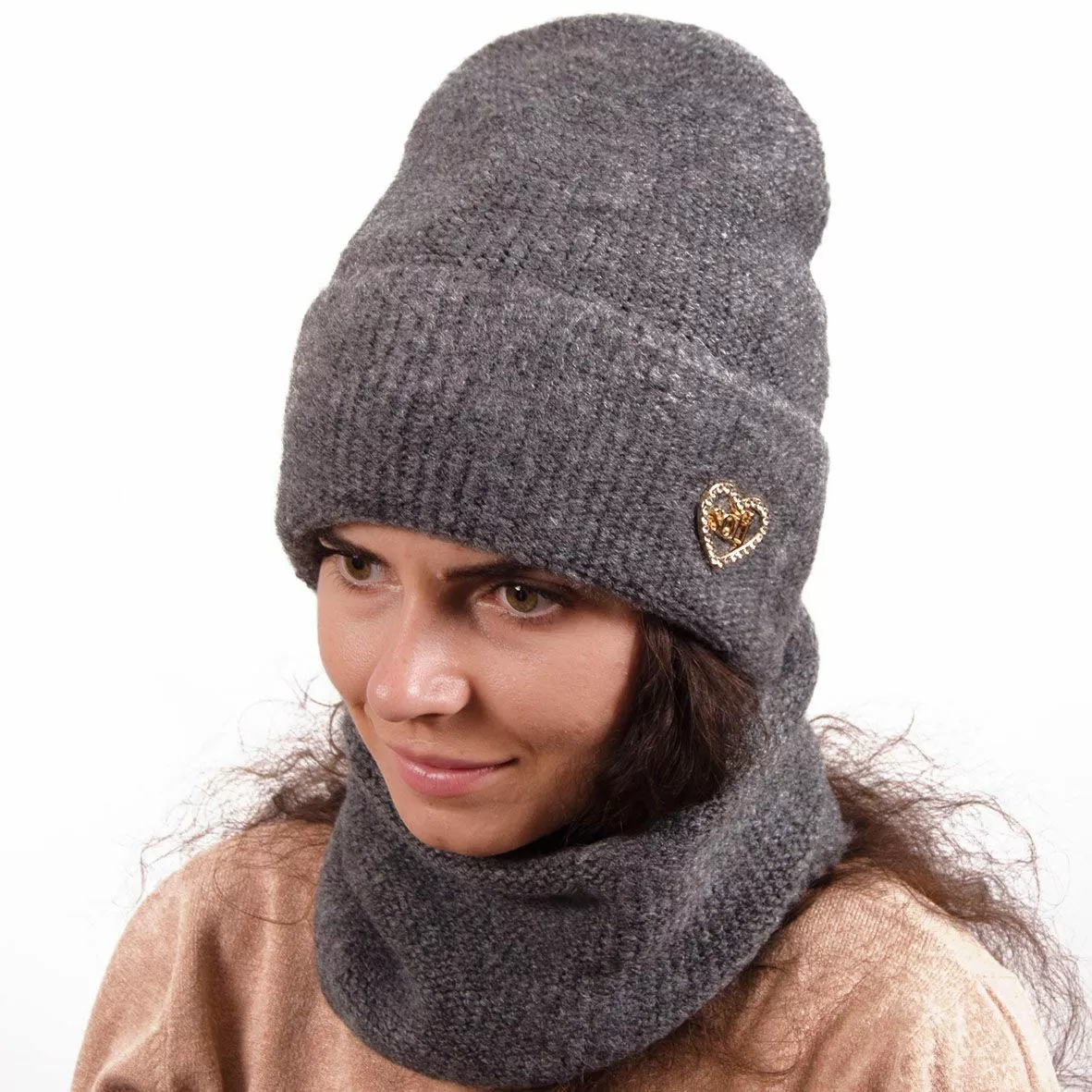 Однотонный женский набор - состоит из хомута и стильной шапки.