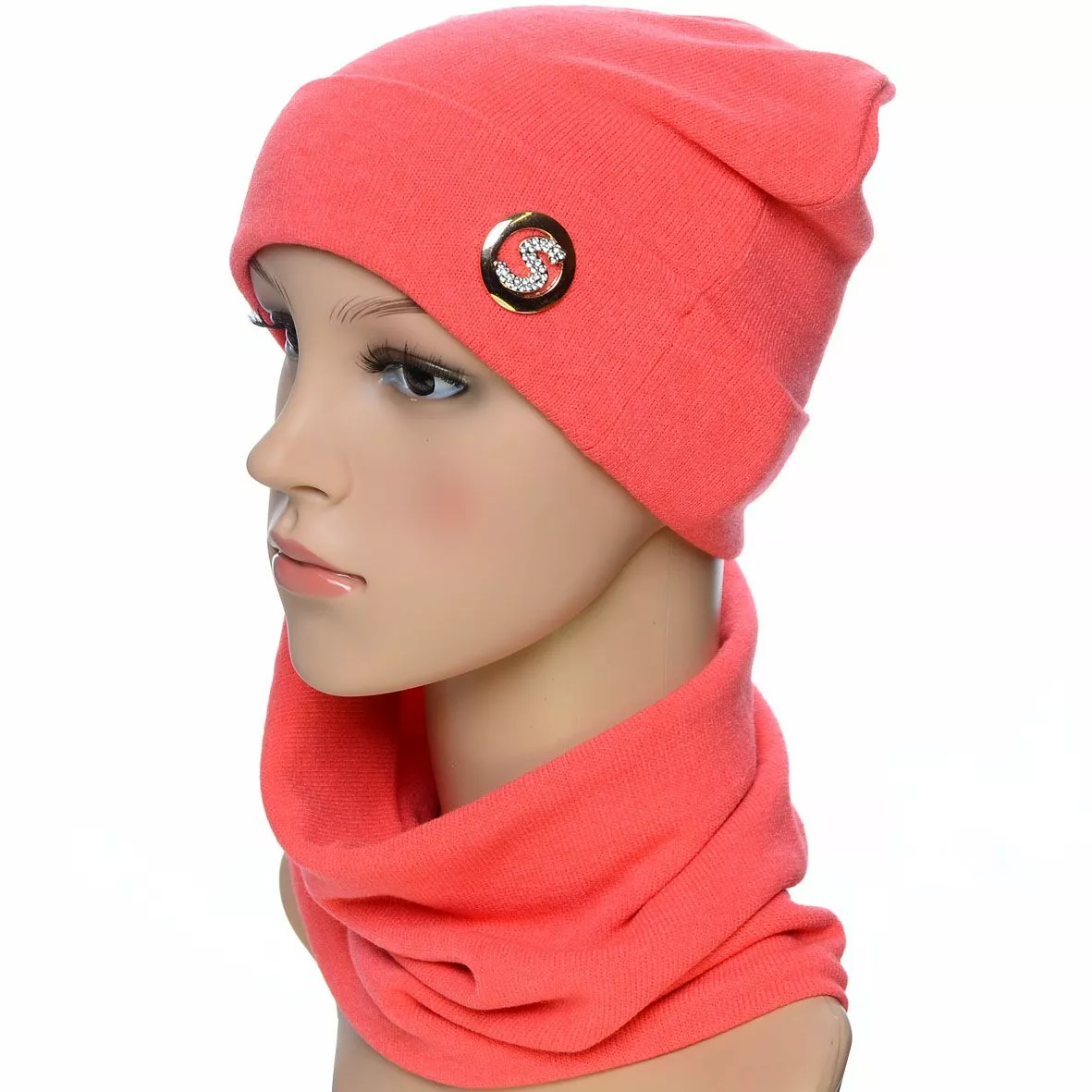 Трикотажный однотонный комплект для женщин, состоящий из шапки и