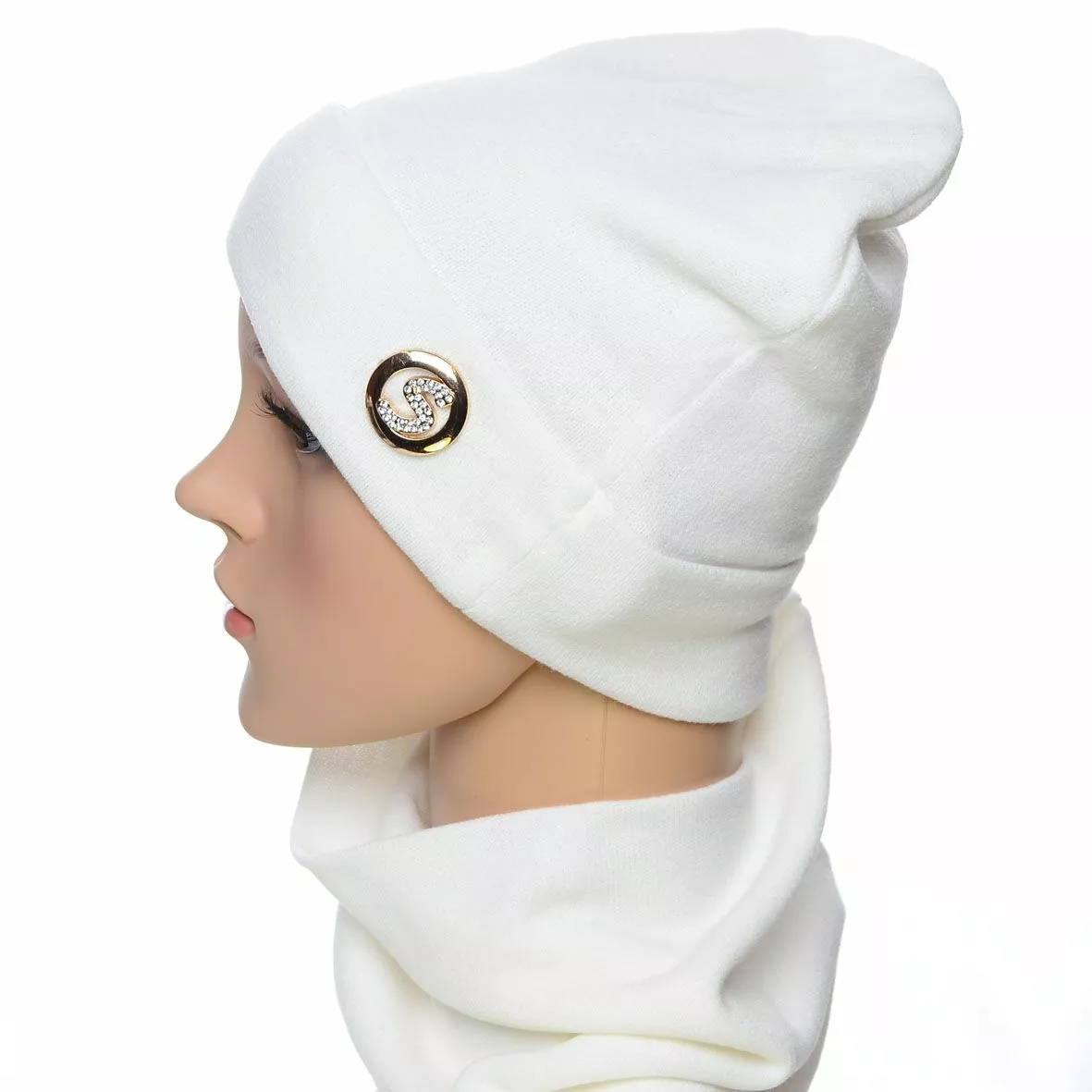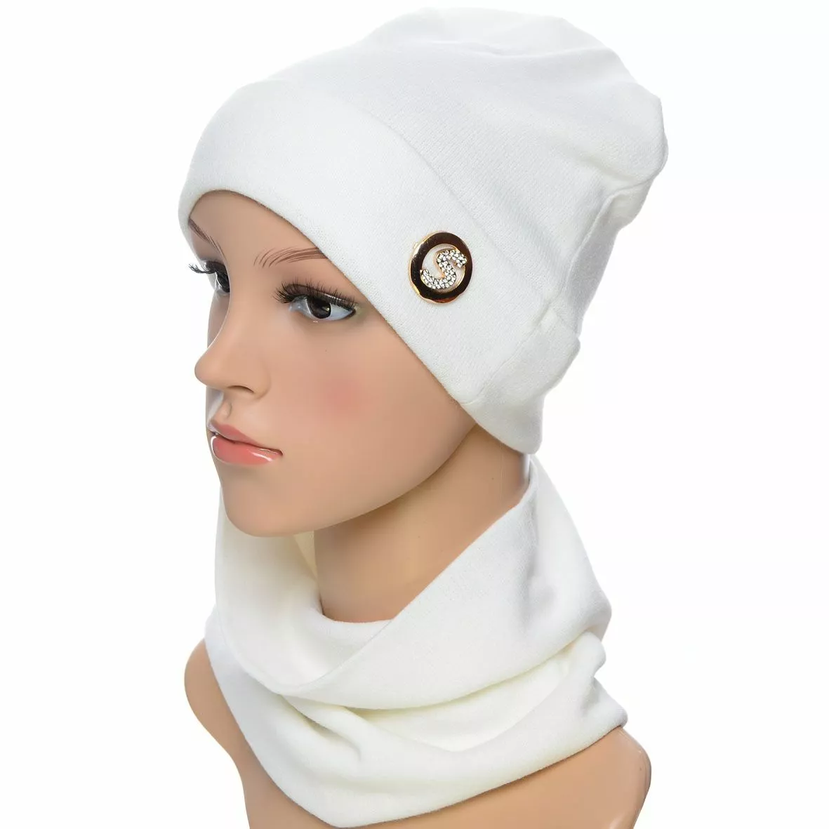Трикотажный однотонный комплект для женщин, состоящий из шапки и
