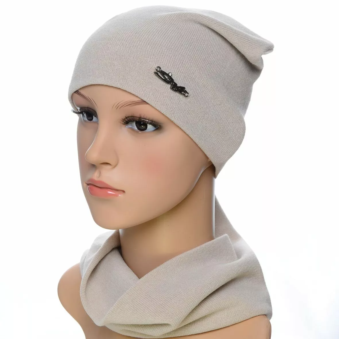 Трикотажный комплект для женщин, состоящий из шапки и хомута - это