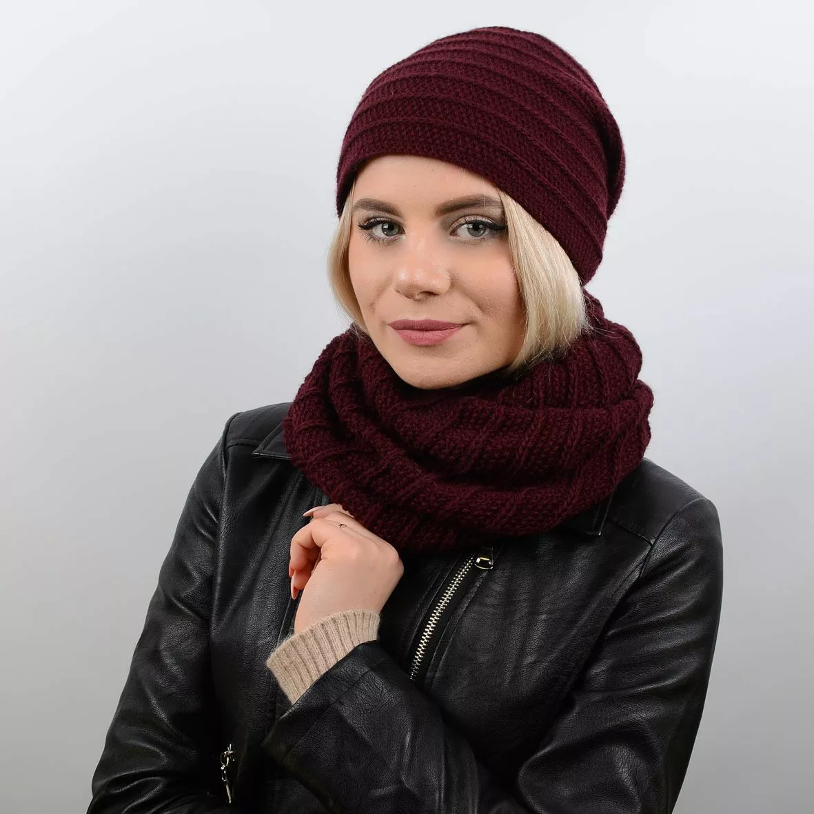 Женский молодежный вязаный набор, который состоит из шапки и