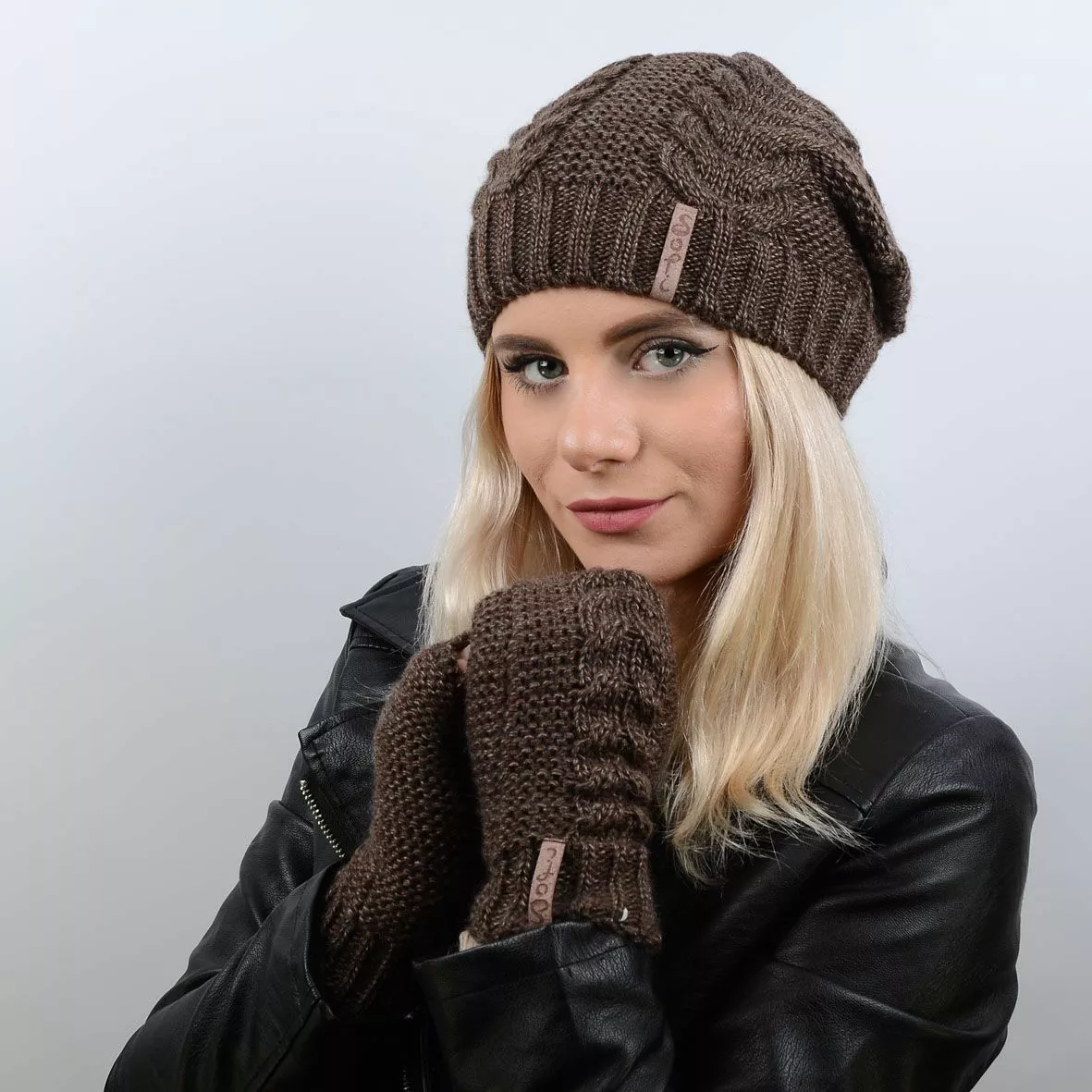 Яркий стильный комплект, состоящий из шапки и перчаток-митенок –