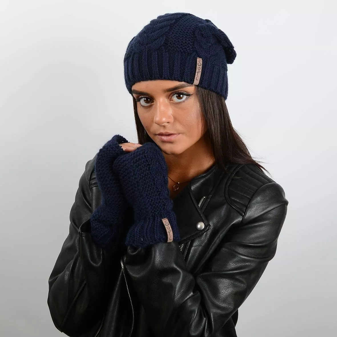 Яркий стильный комплект, состоящий из шапки и перчаток-митенок –