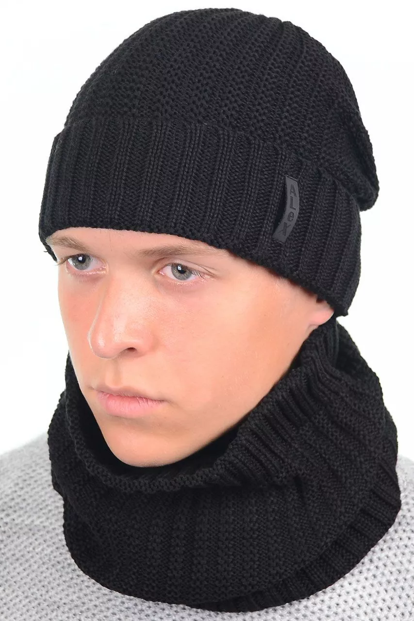 Однотонный мужской набор - состоит из хомута и стильной шапки.