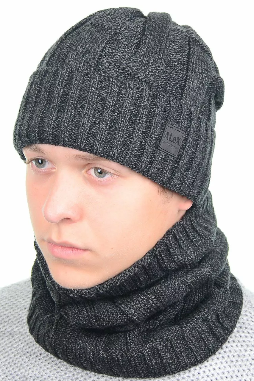 Однотонный мужской набор - состоит из хомута и стильной шапки.