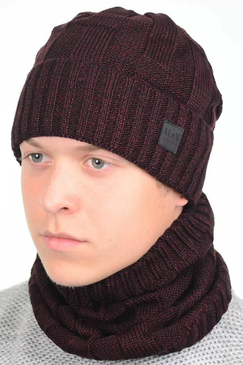 Однотонный мужской набор - состоит из хомута и стильной шапки.