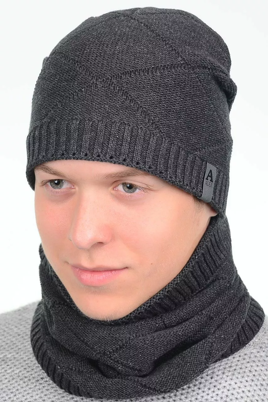 Однотонный мужской набор - состоит из хомута и стильной шапки.