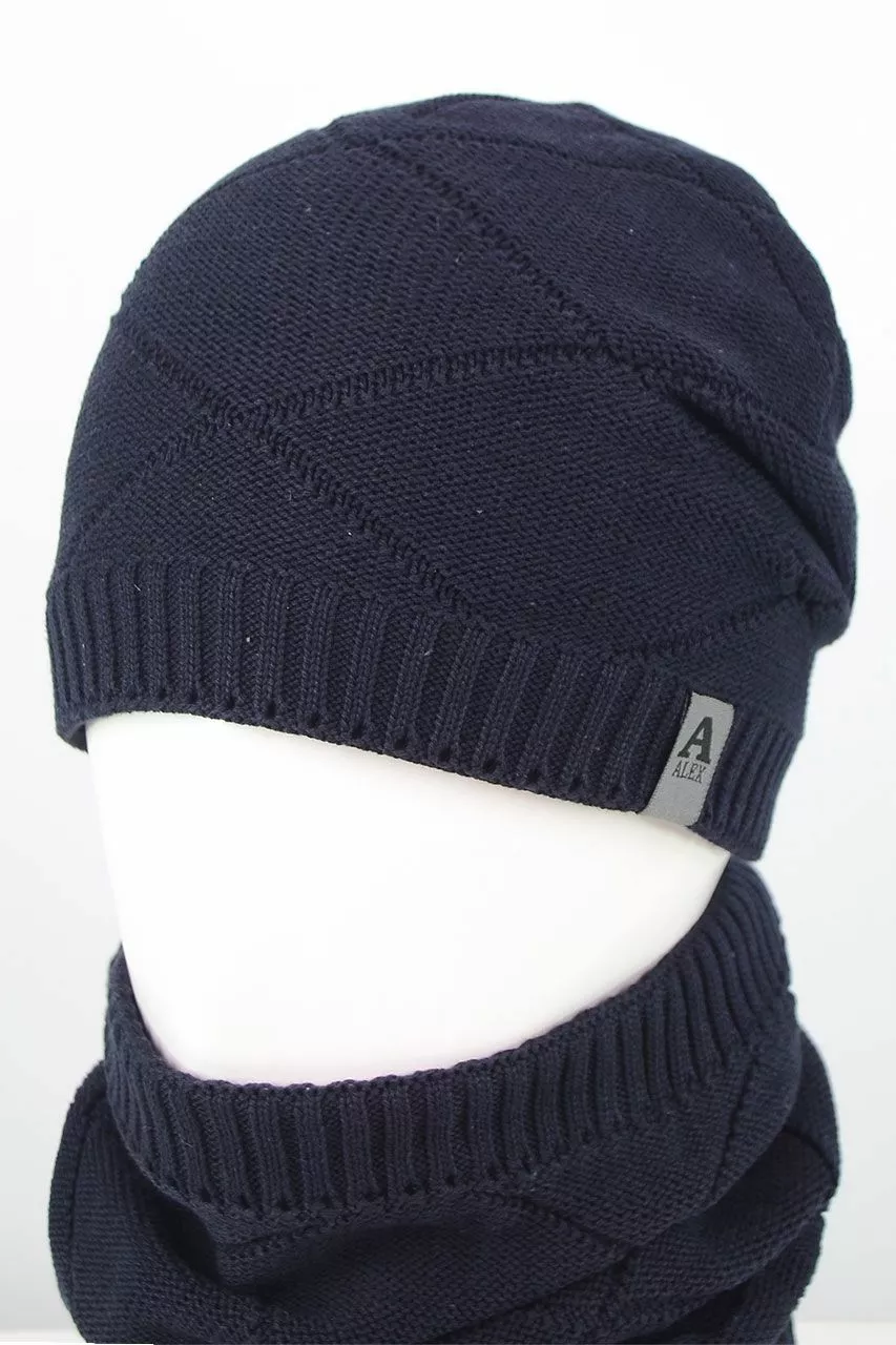 Однотонный мужской набор - состоит из хомута и стильной шапки.
