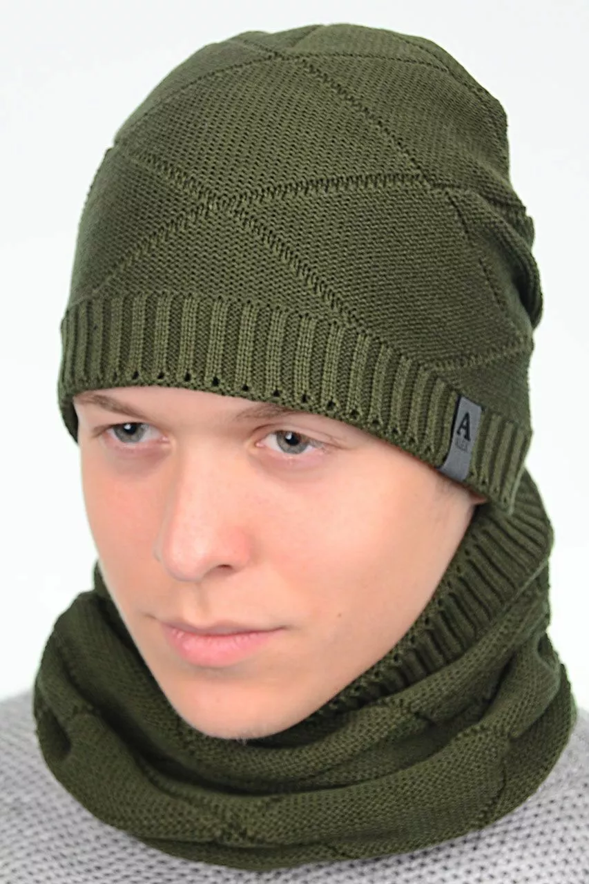 Однотонный мужской набор - состоит из хомута и стильной шапки.