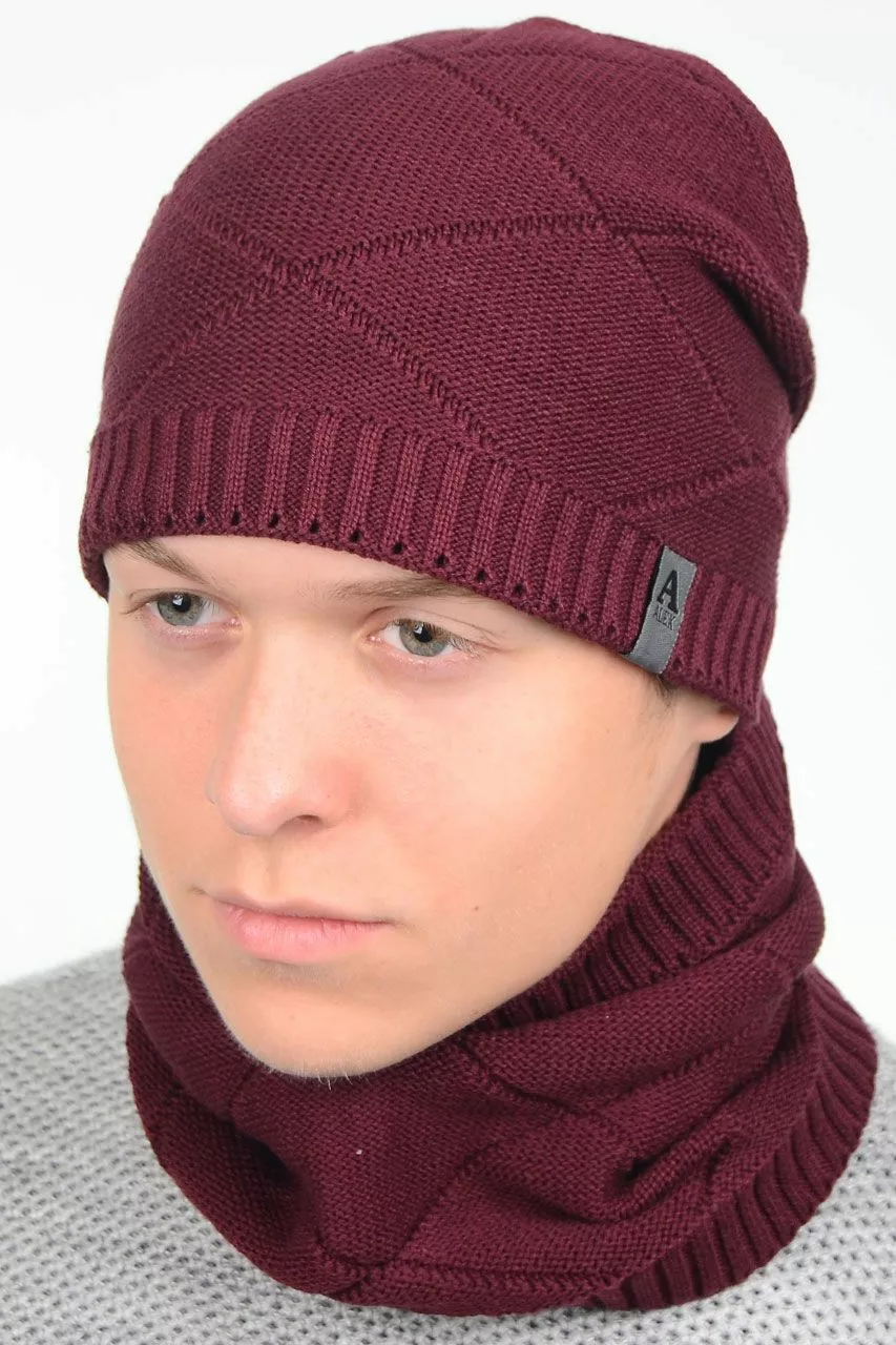 Однотонный мужской набор - состоит из хомута и стильной шапки.