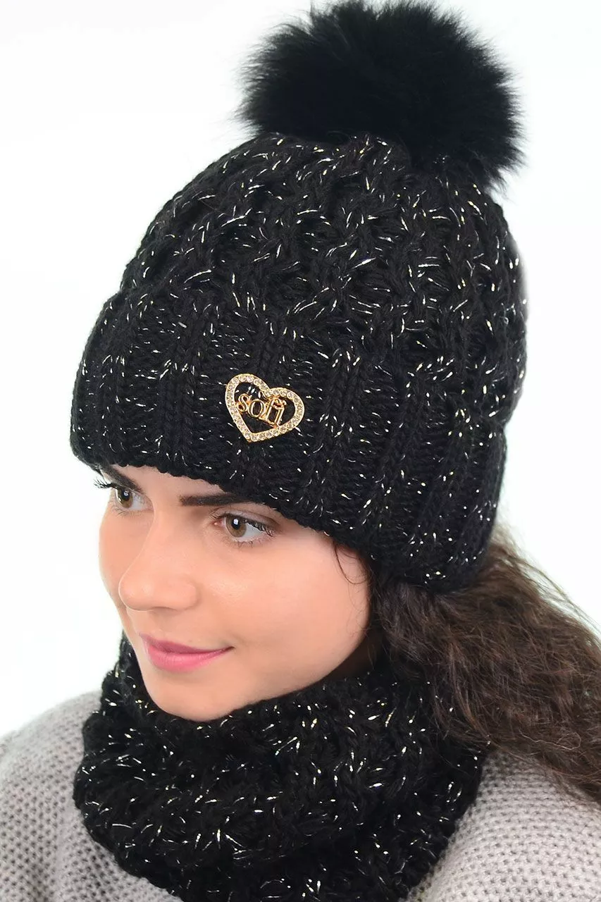 Хомут и зимняя шапка с бумбоном - смотрятся красиво и стильно.