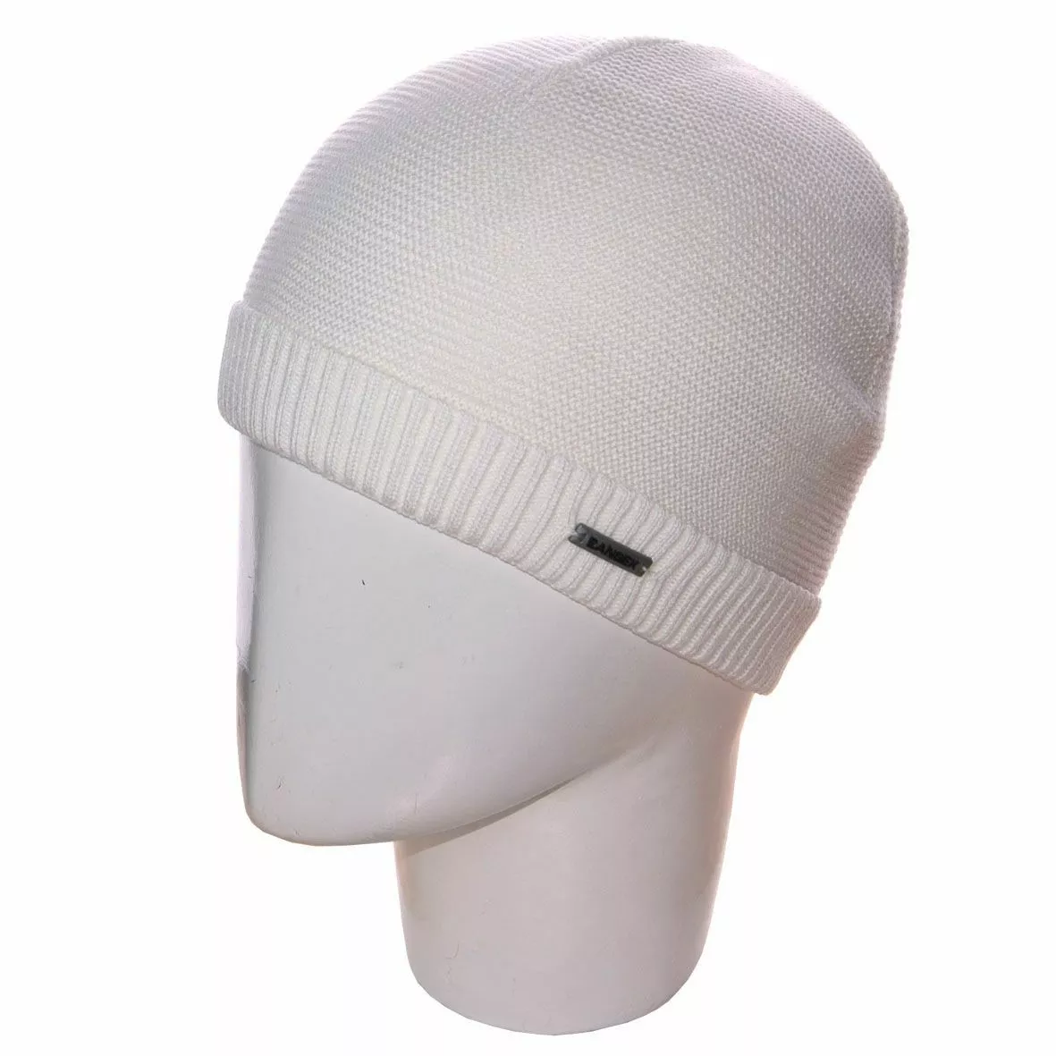 лаконично. Край шапки оформлено мелкой резинкой с фурнитурой в виде