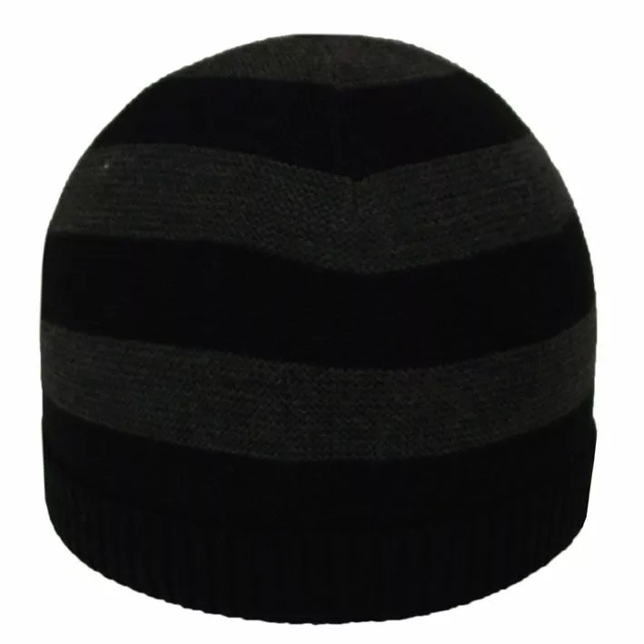 погоду. Шапка имеет расцветку в полоску, её край оформлено мелкой