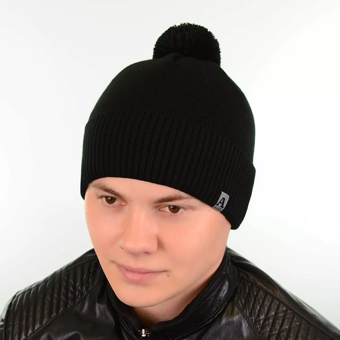 Мужская вязаная шапка с ниточным помпоном - отлично подойдет для