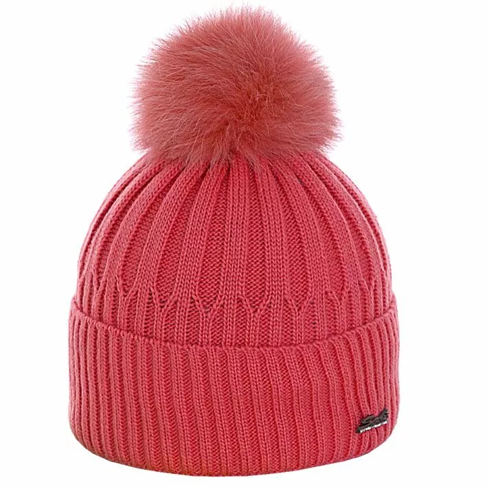 Вязаная шапка с широким отворотом и натуральным меховым помпоном –