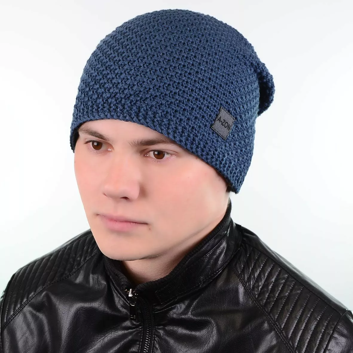 Красивая вязаная мужская шапка-чулок с заклепом - подчеркнет вашу