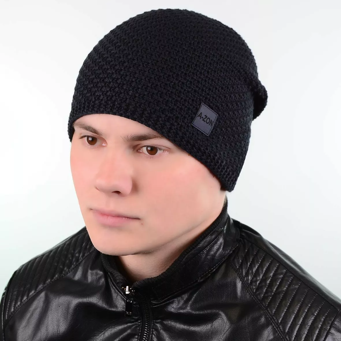 Красивая вязаная мужская шапка-чулок с заклепом - подчеркнет вашу