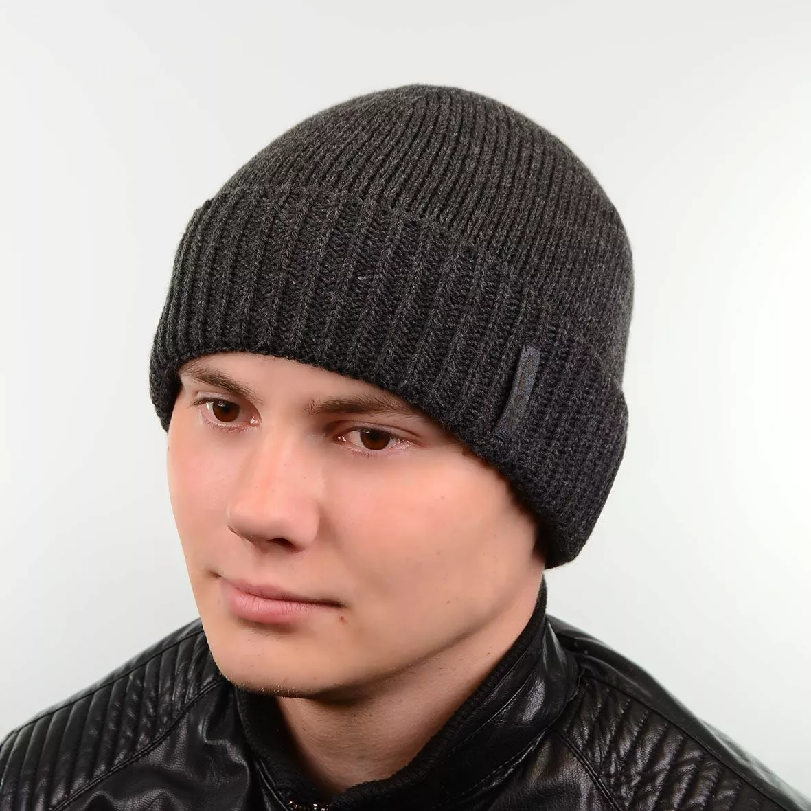 Красивая вязаная мужская шапка с подворотом - подчеркнет вашу