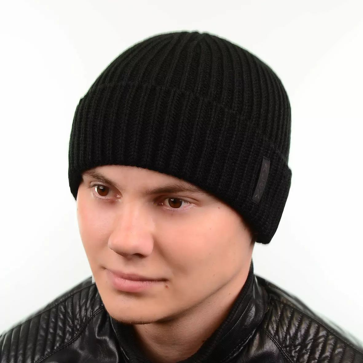 Красивая вязаная мужская шапка с подворотом - подчеркнет вашу