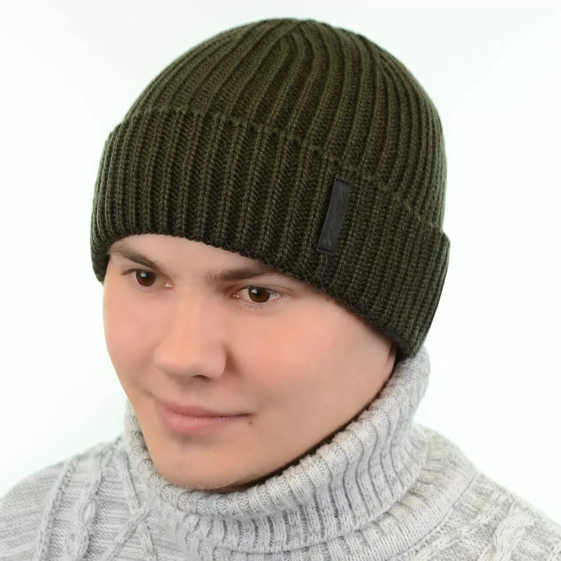 Красивая вязаная мужская шапка с подворотом - подчеркнет вашу