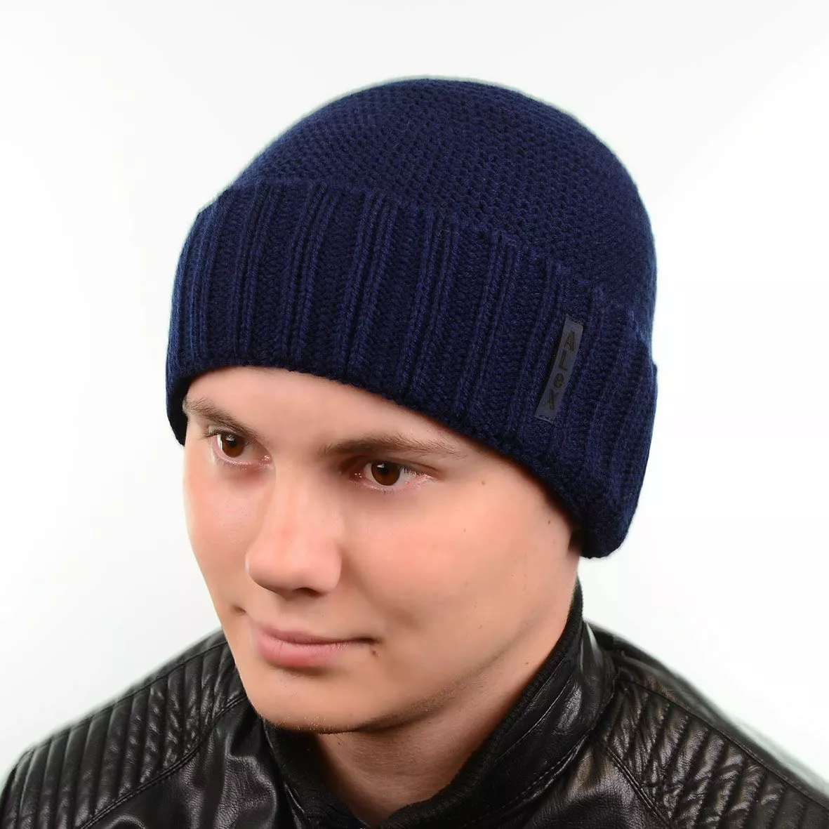 Красивая вязаная мужская шапка с подворотом - подчеркнет вашу