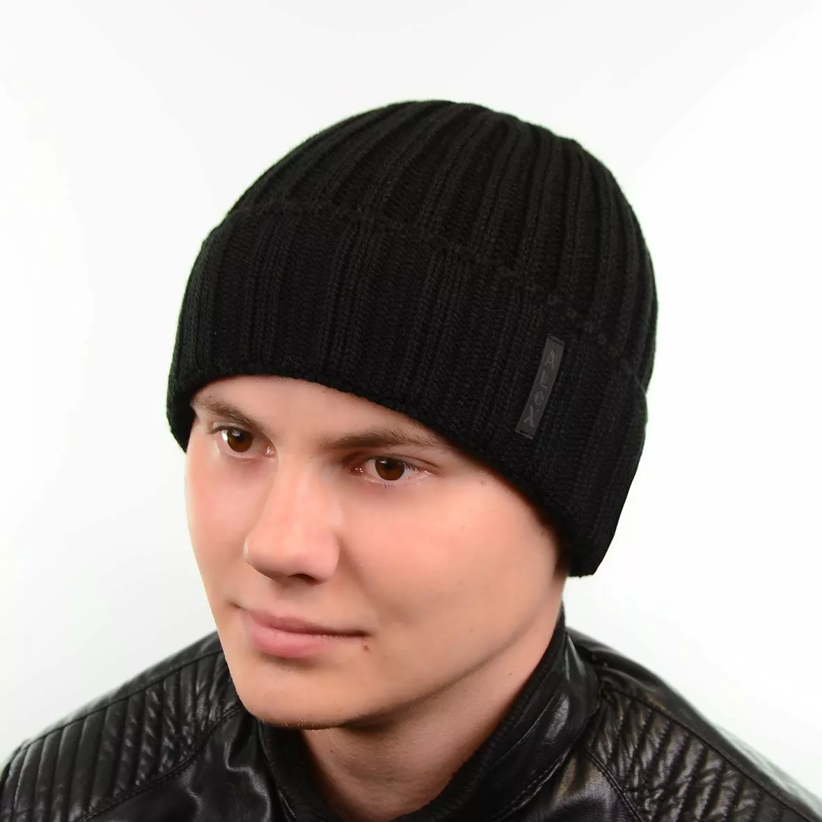 Красивая вязаная мужская шапка с подворотом - подчеркнет вашу