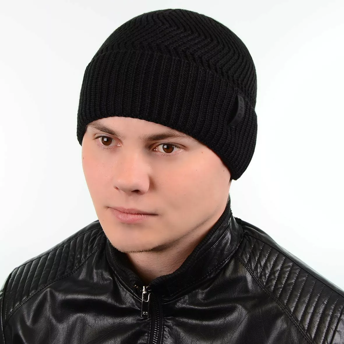 Красивая вязаная мужская шапка с отворотом - подчеркнет вашу