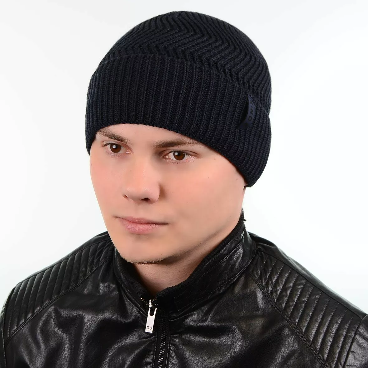 Красивая вязаная мужская шапка с отворотом - подчеркнет вашу