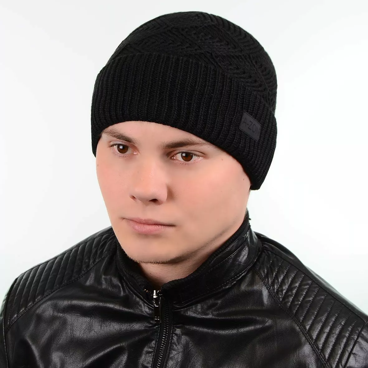 Красивая вязаная мужская шапка с отворотом - подчеркнет вашу