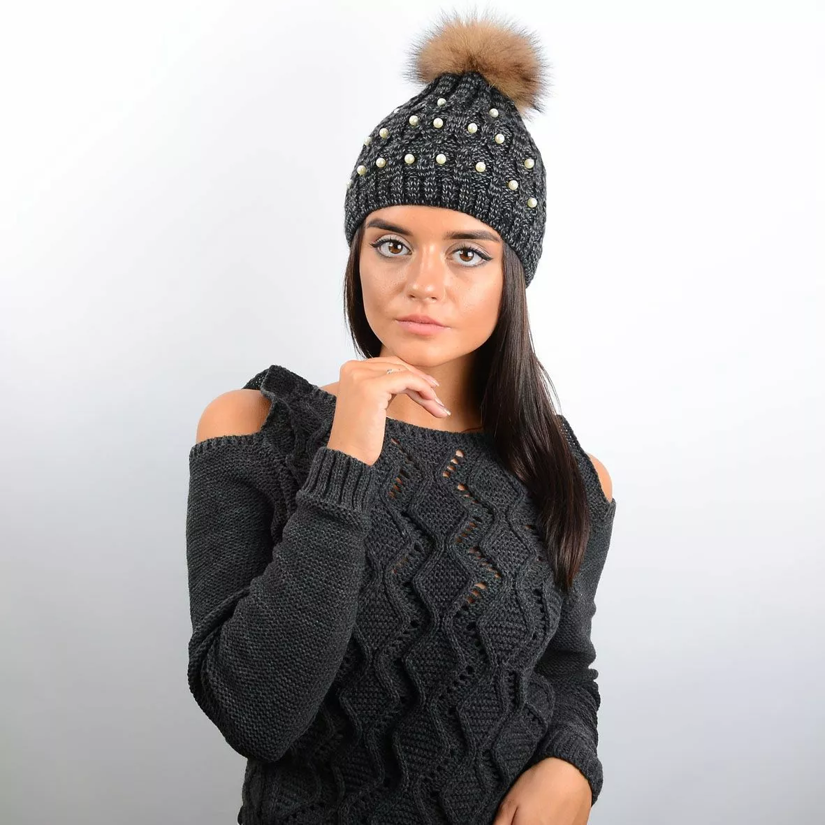 Шапка с натуральным меховым помпоном - подчеркнет естественную