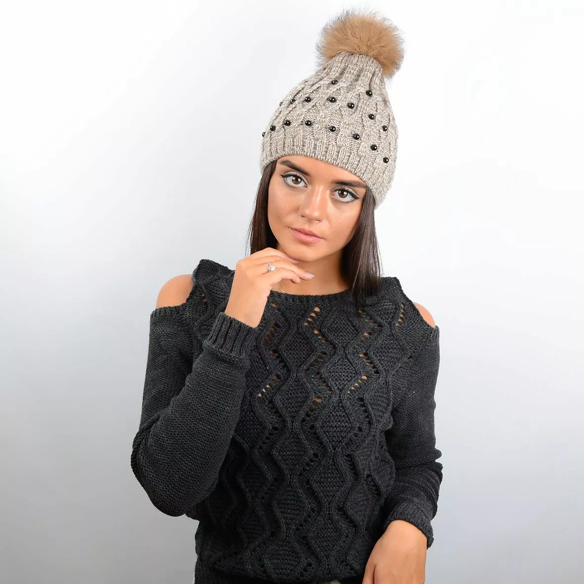 Шапка с натуральным меховым помпоном - подчеркнет естественную