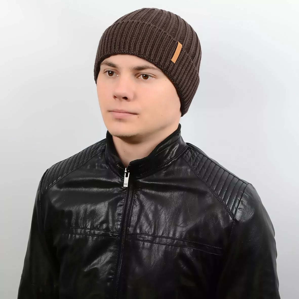 Теплая мужская шапка с широким подворотом, выполнена крупной