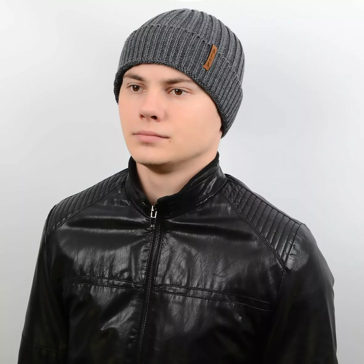 Теплая мужская шапка с широким подворотом, выполнена крупной