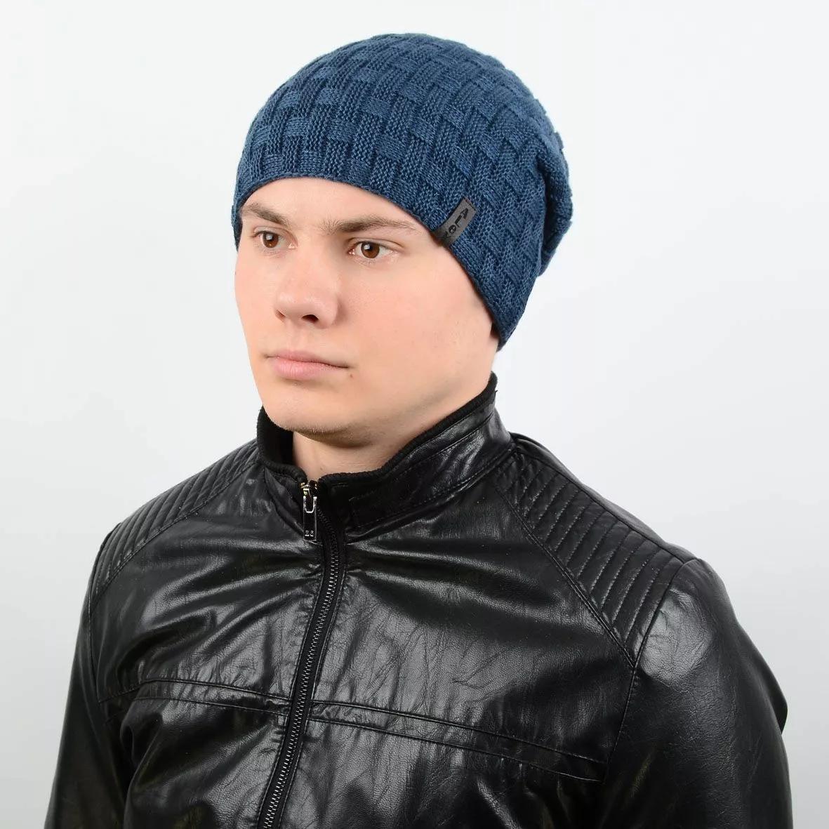 разных вида вязки, декором выступает кожаная лейба "Alex".