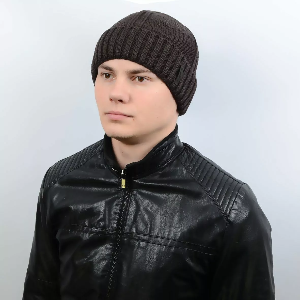 Красивая вязаная мужская шапка с подворотом - подчеркнет вашу