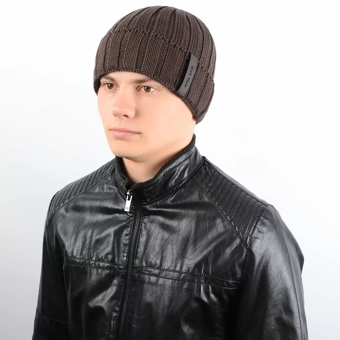 Теплая мужская шапка с подворотом, выполнена из шерсти с