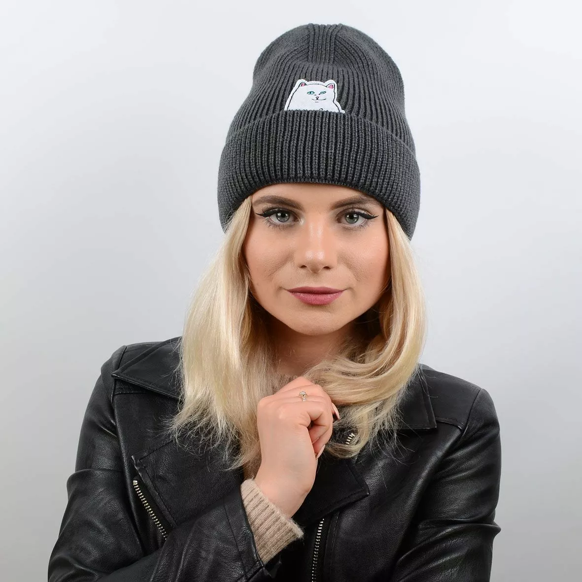 Яркая и модная шапка с нашивкой "cat" - отлично впишется в