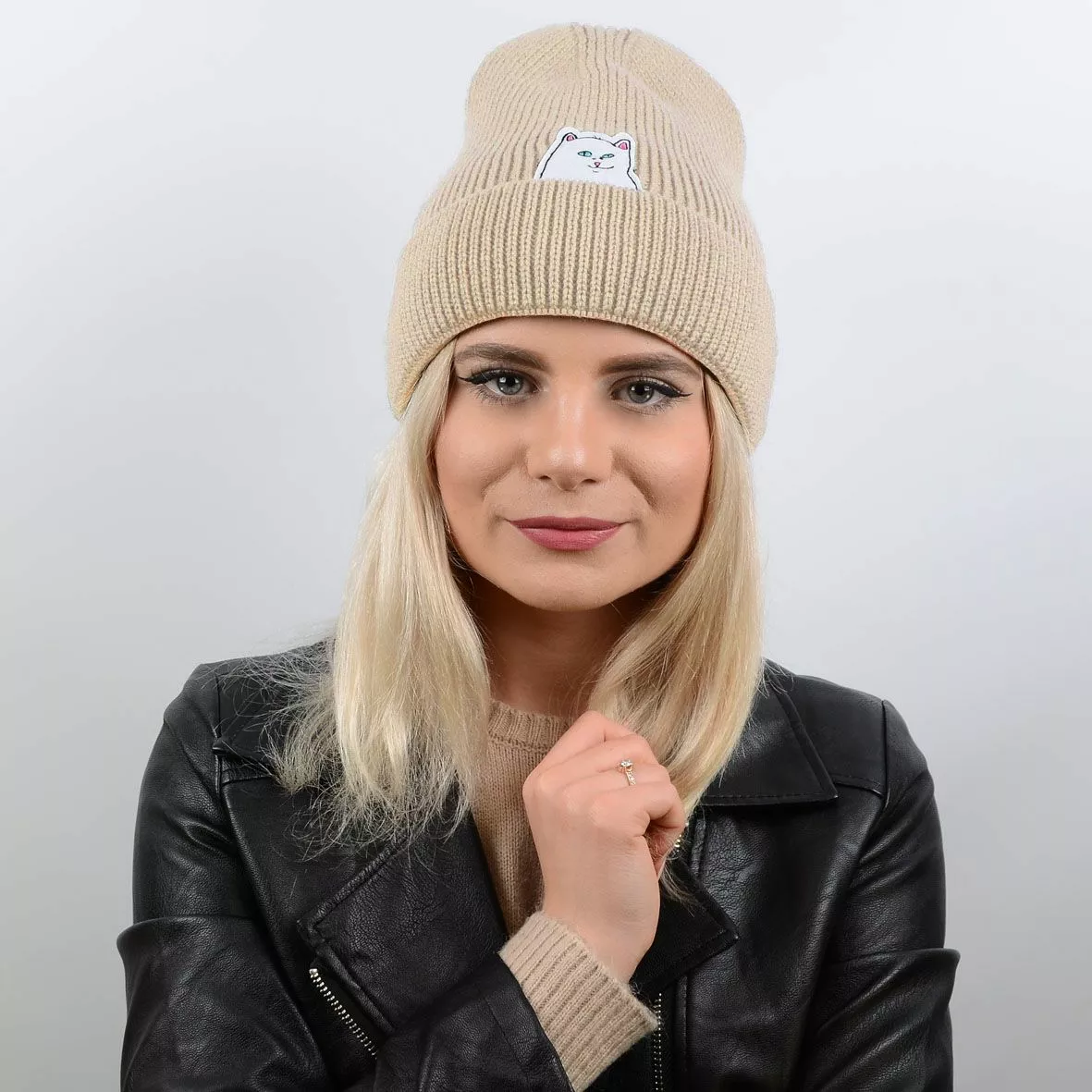 Яркая и модная шапка с нашивкой "cat" - отлично впишется в
