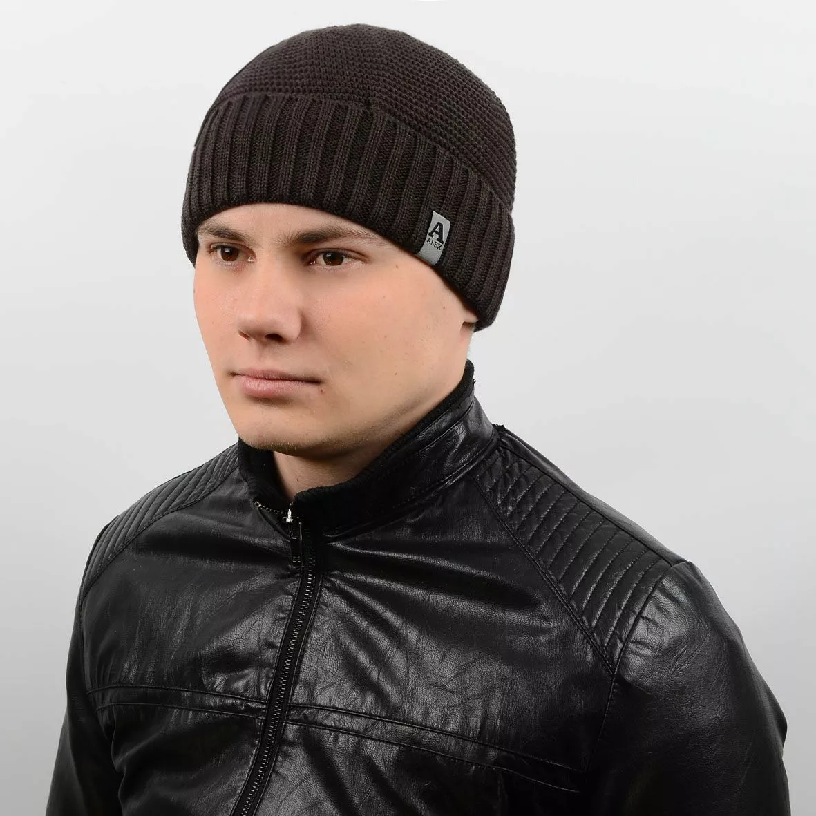 Теплая мужская шапка с подворотом, выполнена из шерсти с