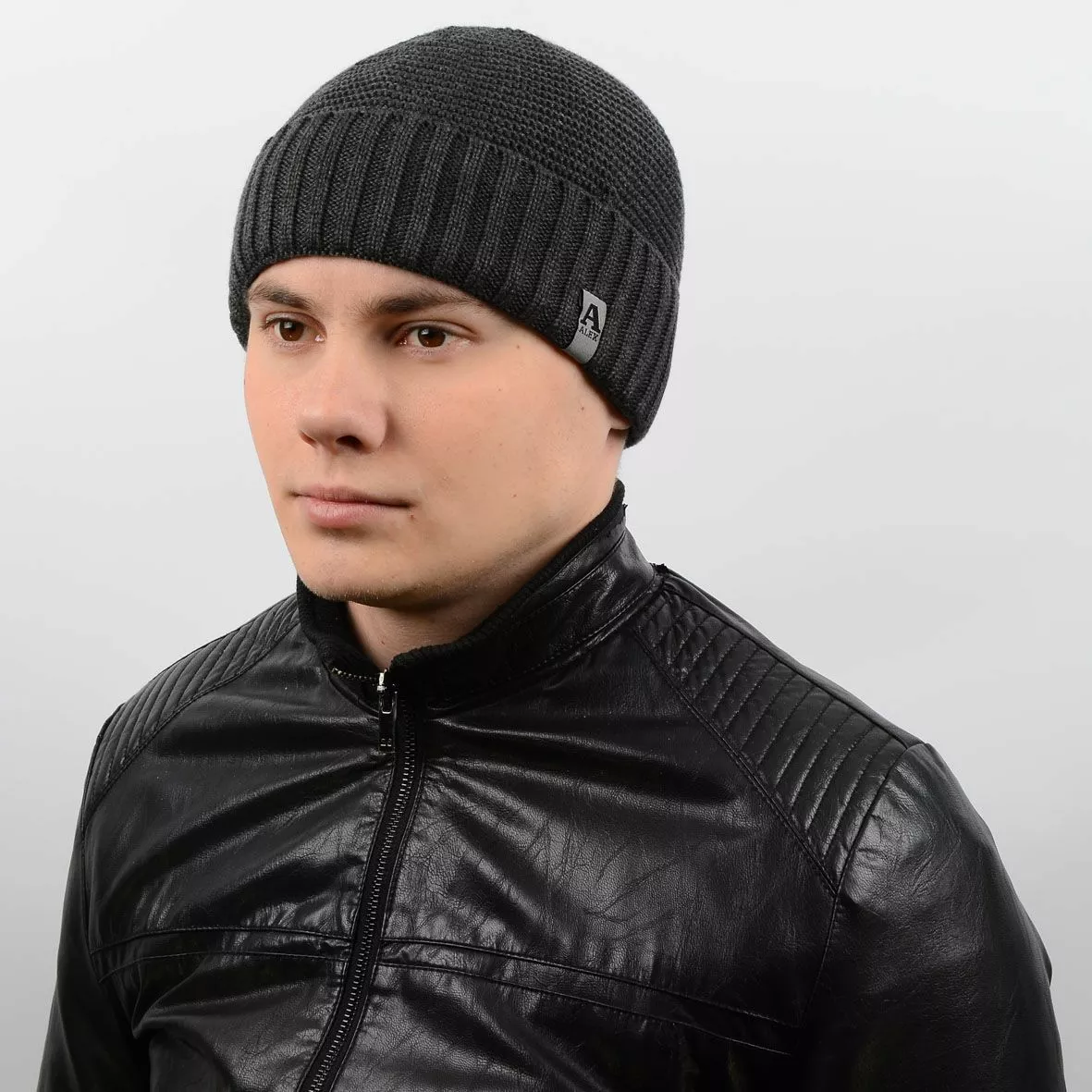 Теплая мужская шапка с подворотом, выполнена из шерсти с