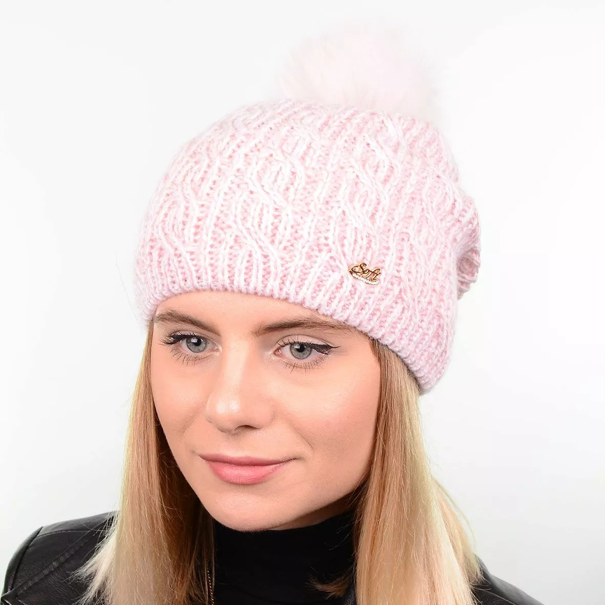 Модная зимняя шапка с натуральным меховым помпоном - смотрится