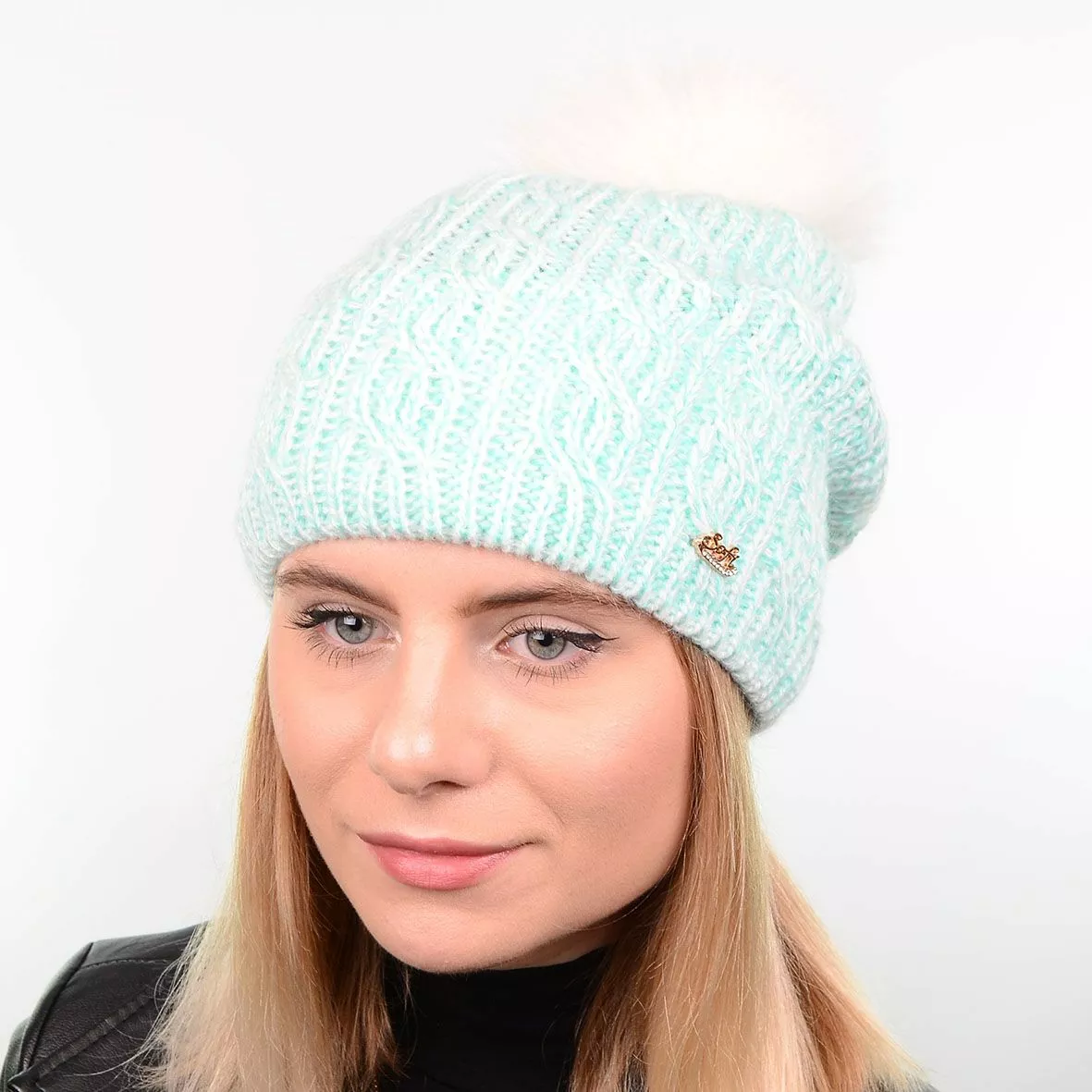 Модная зимняя шапка с натуральным меховым помпоном - смотрится