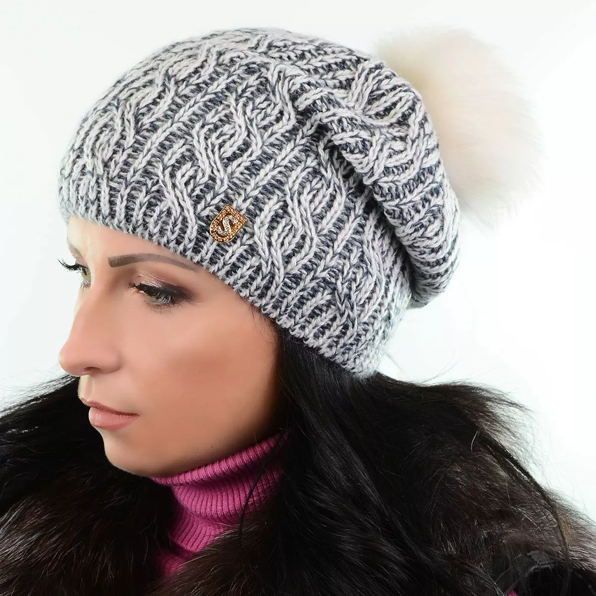 Модная зимняя шапка с натуральным меховым помпоном - смотрится