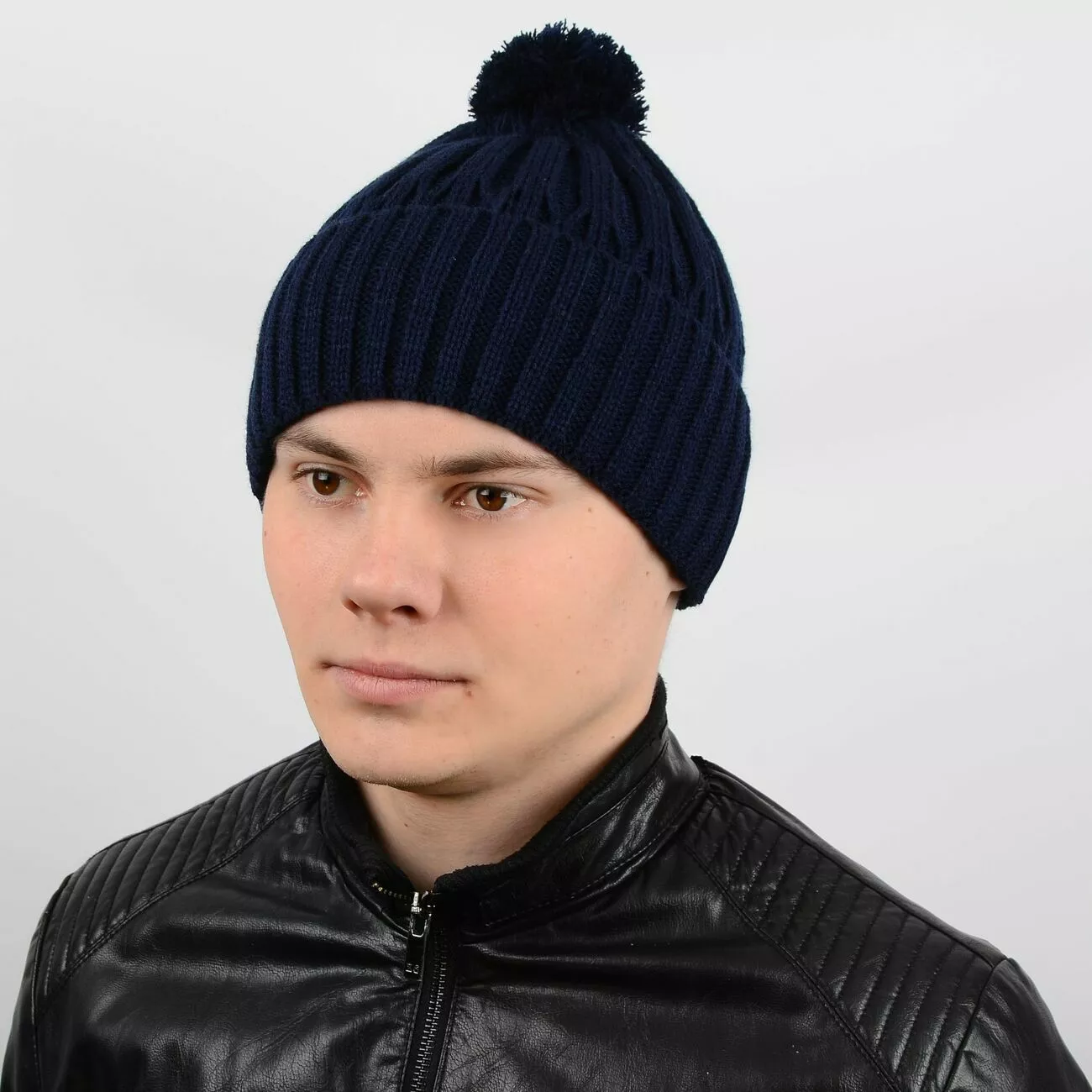 Классическая мужская вязаная шапка с ниточным помпоном - отлично