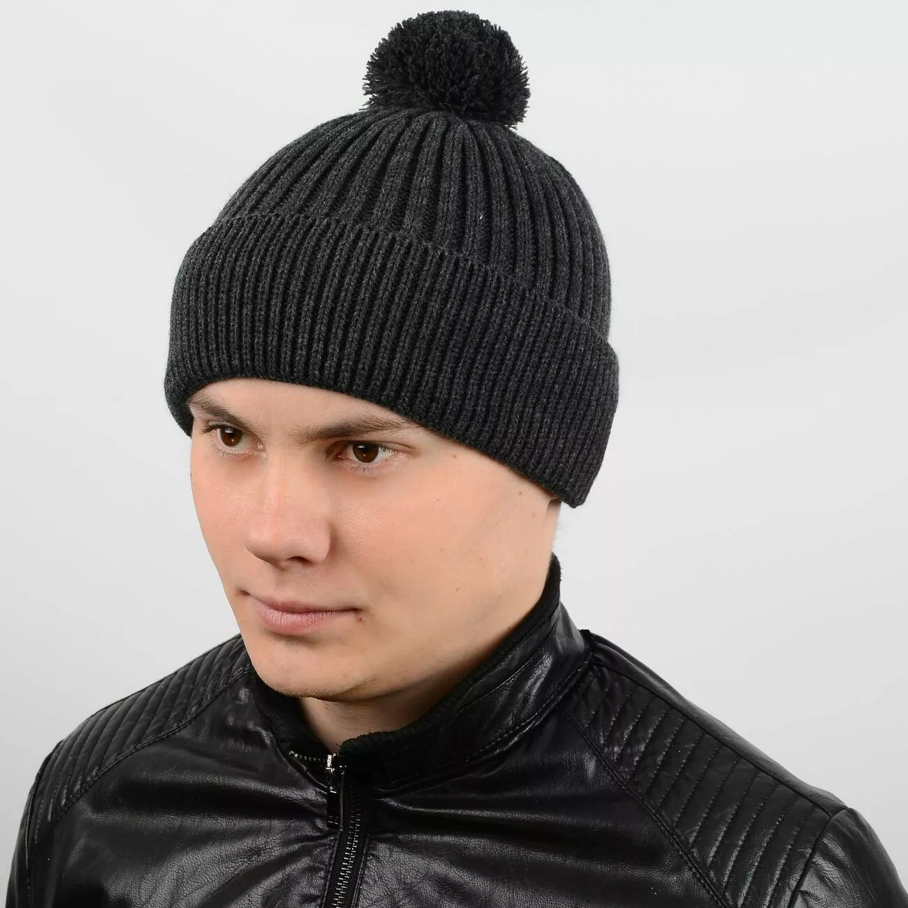 Классическая мужская вязаная шапка с ниточным помпоном - отлично